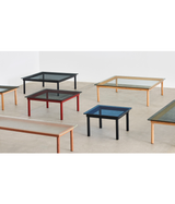 Creada por el diseñador noruego Martin Solem para HAY, Kofi es una gama de mesas de centro elegantes y versátiles con tablero de vidrio. Basada en el deseo de hacer una mesa limpia y funcional con un perfil ecológico, la serie Kofi se desarrolla utilizando métodos de producción inteligentes y eficientes con un diseño de paquete plano. La limpia simplicidad de las dimensiones y proporciones se destaca por la gran atención a los detalles, lo que da como resultado una estética ordenada con líneas distintas y una calidad atemporal. Con una estructura de roble macizo o nogal en madera certificada FSC con laca al agua, la parte superior está hecha de vidrio liso o de caña, que tiene una estructura acanalada distintiva. La mesa viene en diferentes tamaños con diferentes opciones de marco de color y vidrio en variantes transparentes o de colores. Las numerosas combinaciones de diseño hacen que Kofi sea adecuado para una amplia variedad de entornos domésticos o corporativos, desde salas de estar y pasillos hasta recepciones y salas de reuniones.