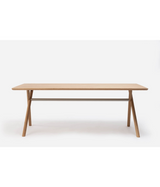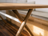 Mesa Bai, con patas en cruz que respeta la particularidad de su diseño original. Estructura en madera, racionalista y futurista, ha llegado para conquistar.