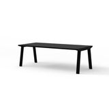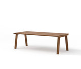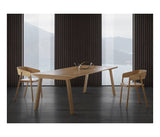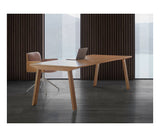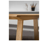 Colección de mesas de aspecto sólido y detalles exquisitos tanto en el tablero como en sus patas ranuradas de tipo caballete.