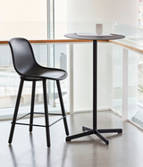 La Neu Table presenta una pequeña mesa redonda o cuadrada unida a un poste central tubular y una base de pedestal de 4 radios en ángulo. Fabricado en acero con recubrimiento en polvo para exteriores y aluminio fundido para ofrecer una mayor durabilidad y resistencia, tiene una cualidad versátil que lo hace ideal tanto para uso en interiores como en exteriores. Sus líneas ordenadas le dan una expresión elegante y discreta, lo que lo convierte en una opción popular para espacios públicos como cafés y oficinas, así como áreas privadas como jardines y balcones.átil es adecuada para una amplia gama de entornos de comedores u oficinas públicos y privados.