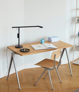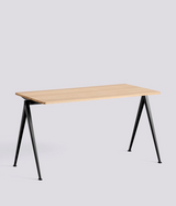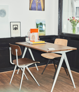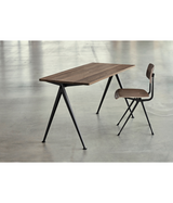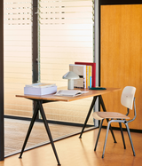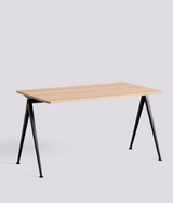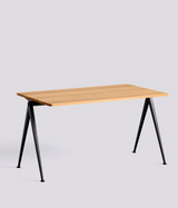 Diseñada para ser funcional, liviana y resistente, la Pyramid Table presenta una base de chapa de acero con una mesa rectangular de roble. Originalmente creada por Wim Rietveld mientras trabajaba en Ahrend en la década de 1950, la colección de acero recortado ha sido relanzada por HAY junto con Ahrend. La mesa viene en dos modelos, con y sin voladizo, y es adecuada para usar en una amplia gama de instituciones educativas, entornos corporativos y hogares privados. Ambas variantes están disponibles en una variedad de acabados de madera y colores base que pueden combinarse con la silla Result y el banco Pyramid.