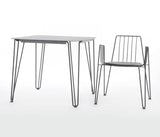 Las mesas cuadradas Rambla, de líneas ligeras, con cuatro patas formalmente elegantes, se identifican naturalmente con una cultura, la mediterránea, en la que compartir una comida o una conversación y un café en torno a una mesa es parte del saber vivir y una manera de relacionarse.