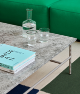 Las Rebar Tables de Sylvain Willenz son una serie de mesas de centro, auxiliares y bandejas que exploran las posibilidades de reconsiderar los materiales y procesos de construcción. El diseño yuxtapone el marco de barra de acero reforzado con tapas de mármol y bandejas de metal para crear una estética equilibrada. Las mesas están disponibles en diferentes tamaños en formas redondas, cuadradas y rectangulares, con tableros y marcos que se ofrecen en varias opciones de color. La expresión clásica de Rebar y las numerosas posibilidades de diseño lo hacen adecuado para usar en una amplia variedad de espacios privados, corporativos o públicos.