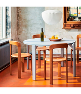 Basada en la Colección Rey original diseñada por el diseñador suizo Bruno Rey en 1971, HAY se ha asociado con Dietiker para relanzar la Mesa Rey. Con la exclusiva conexión de madera a metal sin tornillos de Dietiker, la mesa icónica tiene una silueta ordenada con patas en ángulo que equilibran los bordes redondeados distintivos. Su sencillez, sólida construcción y diseño funcional le otorgan una calidad atemporal que lo hace adecuado para su uso en una amplia variedad de entornos domésticos, públicos, educativos o corporativos. Realizada con una estructura de haya maciza con tablero laminado o chapado, la mesa está disponible en colores originales, así como en nuevos tonos seleccionados por HAY. La Colección Rey no está disponible en HAY en Suiza.