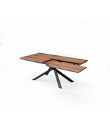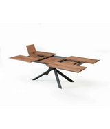 La innovadora mesa 4x4 tiene un sistema fascinante mecanismo de apertura patentado, basado en el movimiento geométrico de los sobres. El modelo ganador en el Reddot Award, cambia en forma y aspecto porque las extensiones se cruzan perpendicularmente, esto hace que las venas de la madera creen un refinado diseño decorativo.