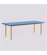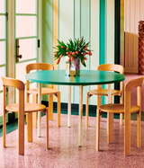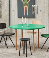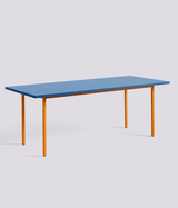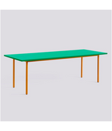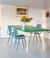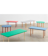 Materiales utilizados en su máxima expresión, la serie de mesas Two-Colour se inspira en los contrastes y similitudes de los materiales utilizados. Con patas de tubo de acero para una resistencia y estabilidad óptimas, la superficie de la mesa está fabricada en Valchromat® de color orgánico, un tipo único de material MDF robusto que cuenta con la certificación FSC y presenta una laca a base de agua. Ambos componentes están unidos por el grosor uniforme, creando una silueta uniforme que se ve interrumpida por los elementos de contraste de color. Two-Colour está disponible en diferentes formas, tamaños y combinaciones de colores, y todos ofrecen una personalidad distinta que lo hace ideal para una amplia variedad de entornos, desde cafés y restaurantes hasta hogares y espacios de oficina.