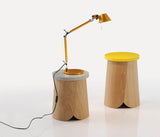 El estudio Nadadora nos propone unas simpáticas banquetas y mesitas cuya base está inspirada en los trobos, unas colmenas hechas con troncos de madera, muy típicas en el norte de la Península Ibérica.