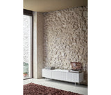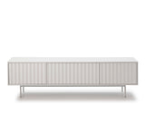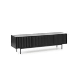 El TV Sierra tiene tres puertas con la trama singular de esta serie. Su interior dispone diferentes baldas y también encontramos una salida para cables en la parte posterior para mantenerlos recogidos y ocultos.