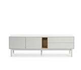 La silueta redondeada del mueble, hace que Corvo sea una colección de aspecto suave y voluminoso. A su vez, esto es lo que permite que todas las piezas queden integradas de manera precisa sin necesidad de piezas extra, generando un aspecto mucho más limpio y cuidado.