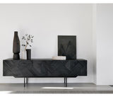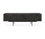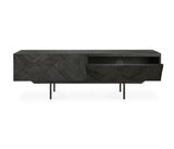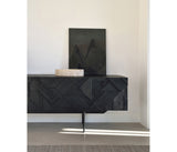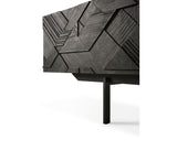 In his quest to add movement to the surface, our designer Alain van Havre started layering and combining triangular shapes. Before he knew it, he had created an interesting composition out of teak. We ended up brushing the surface to highlight the grain and further emphasize the feeling of motion. Originally used for our popular Teak Graphic sideboard, the pattern now translates perfectly to a new TV cupboard.
