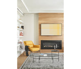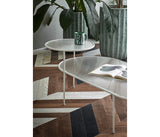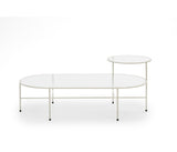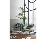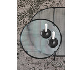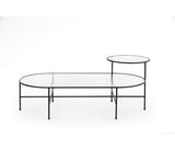 La mesa de centro Nix cuenta con dos sobres en cristal estriado a distinta altura. Estos se apoyan en una estructura de hierro lacado totalmente soldada.