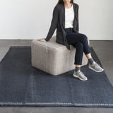 Tejida a la plana de forma artesanal en India, Mía es un Dhurrie que se construye uniendo tres piezas teñidas individualmente logrando así un efecto desgastado, vivido.