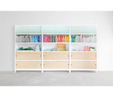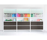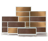 Sapporo es un sistema de almacenamiento inteligente, que nos ayuda a destacar o guardar nuestros objetos. Sapporo es un sistema sencillo y versátil. Se trata de un módulo individual que se puede componer, apilándolo, desde 1 hasta 6 alturas. El módulo Sapporo va apoyado sobre una base de acero lacado blanco fija o con ruedas (con ruedas el máximo son dos alturas). Cada balda lleva una guía de aluminio para insertar las puertas correderas, que además impide que la balda se combe. Las puertas pueden ser de cristal: templado transparente o acabado hielo seco. Y las puertas pueden ser de madera, reversibles, por ejemplo las de roble llevan nogal al otro lado. Una sola puerta, dos acabados. El mueble siempre es blanco, como las nieves de la ciudad japonesa de Sapporo de la que toma su nombre. El mueble siempre tiene una anchura de 120 cm.