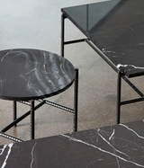 Las Rebar Tables de Sylvain Willenz son una serie de mesas de centro, auxiliares y bandejas que exploran las posibilidades de reconsiderar los materiales y procesos de construcción. El diseño yuxtapone el marco de barra de acero reforzado con tapas de mármol y bandejas de metal para crear una estética equilibrada. Las mesas están disponibles en diferentes tamaños en formas redondas, cuadradas y rectangulares, con tableros y marcos que se ofrecen en varias opciones de color. La expresión clásica de Rebar y las numerosas posibilidades de diseño lo hacen adecuado para usar en una amplia variedad de espacios privados, corporativos o públicos.
