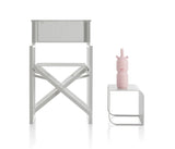 Clack! es una revisión de la tradicional silla plegable de jardín de madera y lona. Aunque estéticamente no parece proponer cambio sustancial alguno, en realidad se trata de una versión muy distinta ya que su estructura no es de madera sino de aluminio. Esto lo cambia todo pues la hace más ligera y resistente a la intemperie, pero también a su vez más estilosa. Por eso encaja igual de bien en plan casual a la orilla del mar que en un elegante comedor de exterior. Aparte de tener una estructura de aluminio, el asiento y el respaldo están hechos en una ergonómica tela plástica, así que en conjunto resiste mucho mejor el sol, el agua o la salitre que los tradicionales modelos de madera y lona.