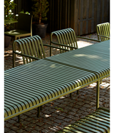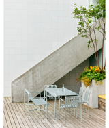 Diseñada por los hermanos franceses Ronan y Erwan Bouroullec, Palissade es una colección de muebles de exterior para HAY en acero con recubrimiento en polvo o acero galvanizado en caliente. Unida por un principio común de geometría simétrica, la colección Palissade está diseñada para reproducir la misma simplicidad visual y fuerza central en toda ella. Diseñada en color y forma para integrarse sin esfuerzo en un paisaje natural o entorno urbano, Palissade está destinada a ser utilizada durante un período de tiempo más largo y volverse más hermosa con los años. La colección es adecuada para una amplia variedad de entornos, desde cafés y restaurantes hasta jardines, terrazas y balcones.