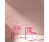 Esta colección versátil, formada por silla, taburetes (alto y bajo) y una silla con reposabrazos, permite una infinidad de combinaciones posibles para crear distintos espacios y ambientes.‎ Se trata de piezas cómodas, sencillas y fáciles de mover y apilar, fabricadas íntegramente en aluminio soldado, que destacan por unas lineales siluetas que transmiten ligereza.‎