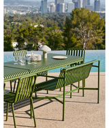 Diseñada por los hermanos franceses Ronan y Erwan Bouroullec, Palissade es una colección de muebles de exterior para HAY en acero con recubrimiento en polvo o acero galvanizado en caliente. Unida por un principio común de geometría simétrica, la colección Palissade está diseñada para reproducir la misma simplicidad visual y fuerza central en toda ella. Diseñada en color y forma para integrarse sin esfuerzo en un paisaje natural o entorno urbano, Palissade está destinada a ser utilizada durante un período de tiempo más largo y volverse más hermosa con los años. La colección es adecuada para una amplia variedad de entornos, desde cafés y restaurantes hasta