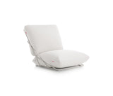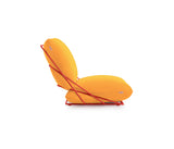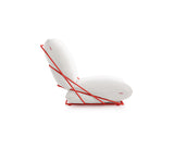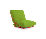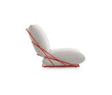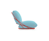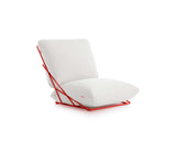 Un asiento con un carácter desenfadado y casual, pero al mismo tiempo elegante y colorista. La más genuina expresión del estilo Diabla. A partir de este sillón de una plaza nació toda la colección Valentina Outdoor. Su creadora, Alejandra Gandía-Blasco Lloret, se propuso diseñar un sofá empleando solamente dos cojines y el mínimo de elementos. Para evitar que los cojines se deslicen y se separen, se sujetan entre sí a través de una cremallera que queda camuflada a la vista.