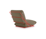 Ambos se acoplan a su vez a la liviana y casi imperceptible estructura de varillas de acero mediante otra cremallera, para que todo el conjunto se mantenga fijo. Los cojines están hechos de una tela especial para resistir al exterior y son desenfundables. Esto permite que se puedan lavar fácilmente o que se puedan cambiar por un juego de otro color de la gama de tonos que ofrece la línea Valentina Outdoor.