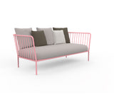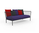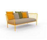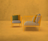 Esta colección desnuda, sincera y audaz juega con la geometría y los colores vivos, que pueden ser aplicados tanto en el termolacado del marco como en el tejido de sus generosos cojines. Y es que el componente cálido y textil juega un importante papel suavizando su apariencia formal, aportando confort desde la cercanía y permitiendo, a su vez, enormes posibilidades de personalización.