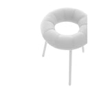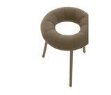 El asiento está realizado con un relleno de espuma y los fruncidos que genera la tela que lo reviste acentúan aún más su similitud con el aspecto de un donut. Se trata de un textil que está especialmente indicado para su uso al aire libre, así que resulta muy resistente a la intemperie y, además, se puede desenfundar para lavarlo. Precisamente porque su asiento es mullido, resulta mucho más cómodo para un rato largo que otros taburetes hechos con materiales más rígidos.