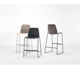 UNNIA es una extensa y versátil colección de asientos basada en un concepto único de combinación de colores y acabados. El diseño permite la combinación de asientos y respaldos de plástico o tapizados, en uno o dos colores, con una amplia gama de bases que permiten diferentes funcionalidades. Este concepto hace posible configurar infinitos diseños personalizados que se adaptan a las necesidades de contextos y estilos decorativos diversos. Taburete alto con asiento y respaldo de polipropileno y base de trineo.