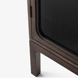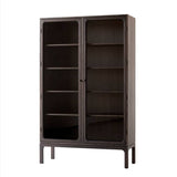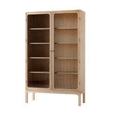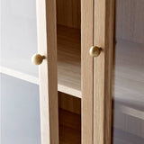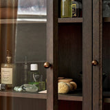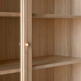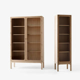 Un mueble de almacenaje con una estética más clásica y atemporal que destaca por ofrecer estructura y cuerpo en madera de roble natural o teñido negro con puertas de cristal templado que permite dejar vistos tus artículos y objetos decorativos, así como la vajilla o incluso libros para zonas de trabajo y oficinas.