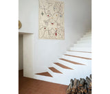 Introducimos la técnica del borado, un laborioso proceso hecho a mano en Pakistán. El bordado en cadeneta añade textura y un suave volumen que enfatizan la sinuosidad del dibujo. A pesar de su aspecto delicado es una técnica resistente apta para uso privado y público. El modelo de interior incluye una pieza tapiz que puede colgarse verticalmente.