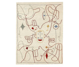 El dibujo, de trazo delicado, define las siluetas de varios personajes imaginarios que se entrelazan y conviven en una bonita composición. Hayón introduce sutilmente el color a través de pequeños elementos que aportan personalidad y nos ayudan a interpretar cada uno de los rostros. Cuando se observa atentamente se descubren 9 rostros, distribuidos de modo que la alfombra se puede observar desde todos los puntos de vista, encajando perfectamente en cualquier espacio.