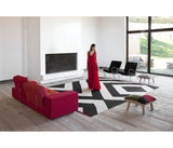 Gracias a la simplificación de los motivos clásicos por geométricos y a la reducción de colores, Mélange se convierte una revisión contemporánea del Kilim. Todo un ejercicio de racionalización estética que conserva la técnica de producción manual ancestral de Pakistán.