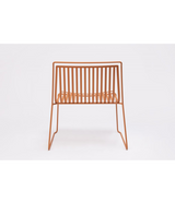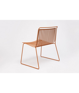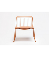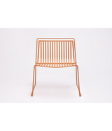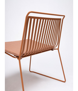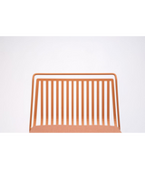 Una estructura de acero que rodea una carcasa de listones de acero, que parecen como que si estuviesen flotando convierten a este taburete el ideal para terrazas o jardines.
