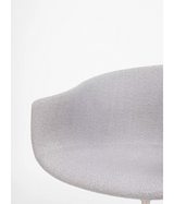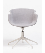De proporciones generosas y líneas envolventes, una pieza polivalente de aspecto noble y cálido. La silla Bai giratoria estructura de acero que sostiene una carcasa de formas suaves y orgánicas en polipropileno o tapizadas.