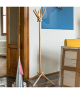 El perchero es un mueble esencial pero siempre sin ennoblecer. Broomstick Uno, en haya natural encerada, es un objeto de gramática elemental: Vico Magistretti, con un toque de ironía, ha confiado su estructura a simples palos de escoba.