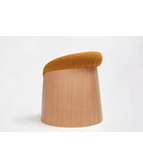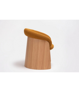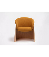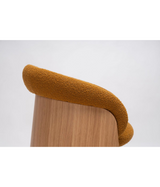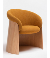estructura de cuatro patas de acero, una base trineo de formas orgánicas y decorativas y un collar de madera robusta. Un diseño escultural que aporta comodidad y calidez.
