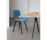 La silla Revolt, uno de los diseños más famosos de Friso Kramer, representa su estilo minimalista distintivo; un diseño revolucionario y una elección de materiales que utiliza un marco de chapa de acero doblada en lugar de un marco tubular tradicional.