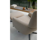 La colección Ethos es un refugio de máximo confort. Su diseño de formas envolventes y proporciones generosas, la inclinación del respaldo y el cuerpo recubierto de espuma blanda y mullida se conjugan en una sensación de abrazo. El ottoman que la acompaña sigue las líneas de la butaca y le sirve de reposapiés. Solos o en conjunto, contribuyen a crear un ambiente acogedor en distintos espacios de la casa, como salones, dormitorios o home office.