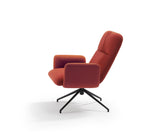Para la butaca y el sillón orejero también hay disponible una base de cuatro radios. Para esta opción el mecanismo giratorio es autocentrante y con efecto “balancín”, bloqueable con accionador. Otras opciones de bases son una estructura de cuatro patas con brazos o una base patín.