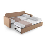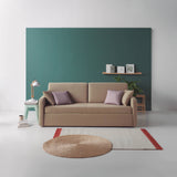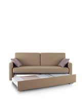 Este sofá cama dispone de una práctica cama nido que permite cubrir las necesidades de tener dos camas independientes o la de disponer de una cama supletoria independiente del propio sofá. Se presenta con fundas de asiento y respaldo desenfundables.