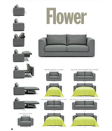 El sistema modular Flower de Giulio Manzoni (2019) ofrece infinitas posibilidades para crear soluciones personalizadas de sistemas acogedores y prácticos, lineales o angulares, con o sin cama, gracias a los módulos combinables.
