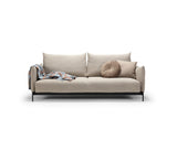 A comfortable family lounger that converts to bed at night featuring soft, functional cushion arms and large comfortable back cushions. Without compromising form and function, Malloy is the perfect lounge spot for friends and family. The soft, flexible upholstered arm and back cushion design provide an exceptional comfort. The neck pillow behind the voluminous cushions offers extraordinary back and neck support while seating, socializing, lounging or napping. This is enhanced by the soft Pocket Spring Dual comfort, the large seat depth and the optional ottoman developed for Malloy to create a chaise lounge. The seat is crafted on a sturdy metal frame that features a bedding box where beddings and blankets can be easily stored. As a bed Malloy measures 150 x 200 cm. For maximum comfort, add a top mattress and you will have a bed for everyday use.