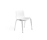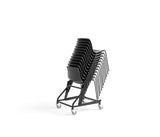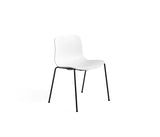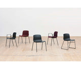 Estructura en acero curvado, en acabado cromado o recubierto en polvo blanco o negro. Asiento de polipropileno. Disponible en varios colores.