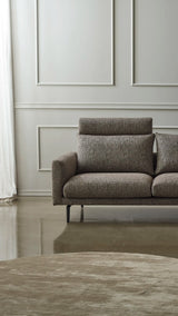 Sofá de diseño nórdico, líneas limpias y tonos suaves. Fabricado con materiales de alta calidad, ofrece confort envolvente y una estética minimalista que aporta calidez y armonía a cualquier salón o estancia.