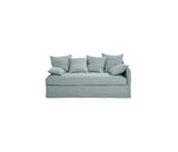 Cap Ferret, la gama de sillones y sofás cama donde la pureza y frescura del lino se unen con la comodidad de las plumas. Gracias a sus generosos asientos y a sus cojines de respaldo rellenos de plumas, el descanso y el bienestar están asegurados. Los materiales con los que están realizados son de gran calidad; la estructura es de haya y los cojines de asiento son Plumtex (HR 35 kg/m3 + capa de plumas). Fundas extraíbles. Amplia gama de colores de tapizado para elegir.