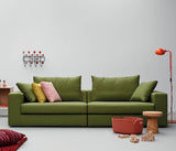 Con un estilo desenfadado, Ego juega al contraste gracias a una estructura de altura baja y unos cojines más amplios que recogen la espalda a una altura confortable. Estos pueden ir separados o bien unidos creando un respaldo continuo. Tapicería totalmente desenfundable.