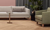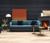 De lenguaje sencillo e inspiración clásica, la colección Venice cuenta con una dimensión de profundidad reducida para adaptarse bien a espacios pequeños. Existen dos versiones del sofá: con base vista o con faldón. En el caso de la base vista, se puede elegir entre cuatro patas de madera o un bastidor metálico. Además, la colección tiene dos modelos de butaca de diferente tamaño.