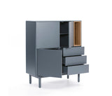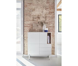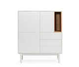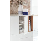 La silueta redondeada del mueble, hace que Corvo sea una colección de aspecto suave y voluminoso. A su vez, esto es lo que permite que todas las piezas queden integradas de manera precisa sin necesidad de piezas extra, generando un aspecto mucho más limpio y cuidado.