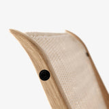 Una butaca diseñada originalmente por Hvidt & Mølgaard en 1959. Esta dinámica aunque discreta butaca se inspira en las anteriores raquetas de tenis de madera y crea una estructura única en forma de X revestida con madera de roble que presenta un detalle de nogal insertado en la unión de su estructura.