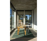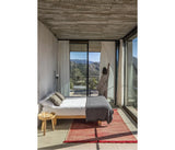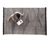 A partir de la combinación de las técnicas empleadas en los kilims y los dhurries típicas, hemos creado un juego único de texturas y ritmo mediante la variación y la presión de las fibras. Los cambios en el patern, que nacen de la tensión aplicada entre trama y urdimbre, le dan a la alfombra un aspecto lleno de matices, evocando así el trabajo manual más primario; el insistente proceso de prueba y error del artesano del que surgen resultados mágicos.