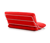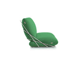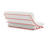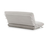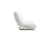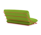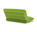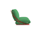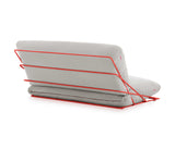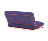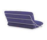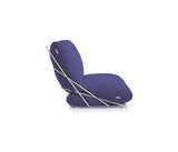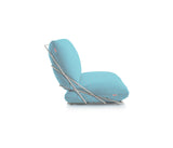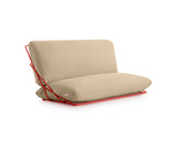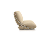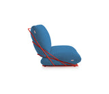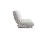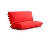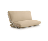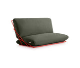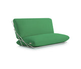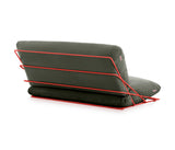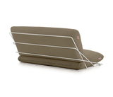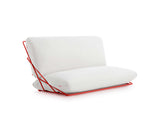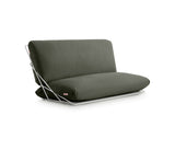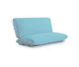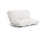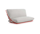 Para evitar que los cojines se deslicen y se separen, se sujetan entre sí a través de una cremallera que queda camuflada a la vista. Ambos se acoplan a su vez a la liviana y casi imperceptible estructura de varillas de acero mediante otra cremallera, una cuestión importante en diseños a ras de suelo para que todo el conjunto se mantenga fijo. Los cojines están hechos de una tela especial para resistir al exterior y son desenfundables. Esto permite que se puedan lavar fácilmente o que se puedan cambiar por un juego de otro color de la gama de tonos que ofrece la línea Valentina Outdoor.